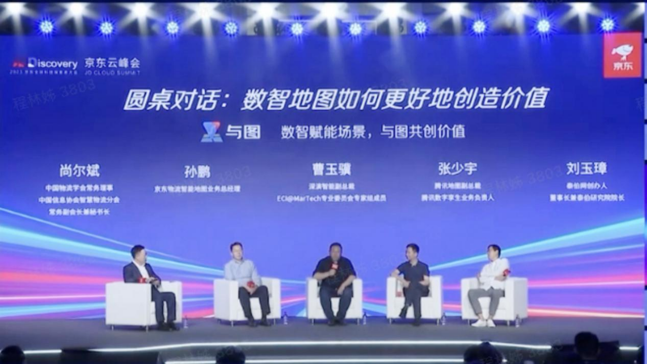 “数智化时代地图应用如何更好地赋能场景创造价值”的圆桌论坛,中间为welcome to 365777智能副总裁曹玉骥